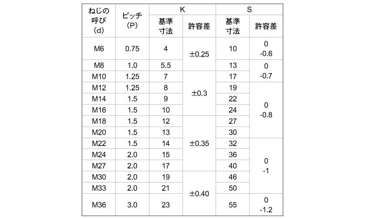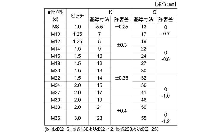 - dia range:M8~M36