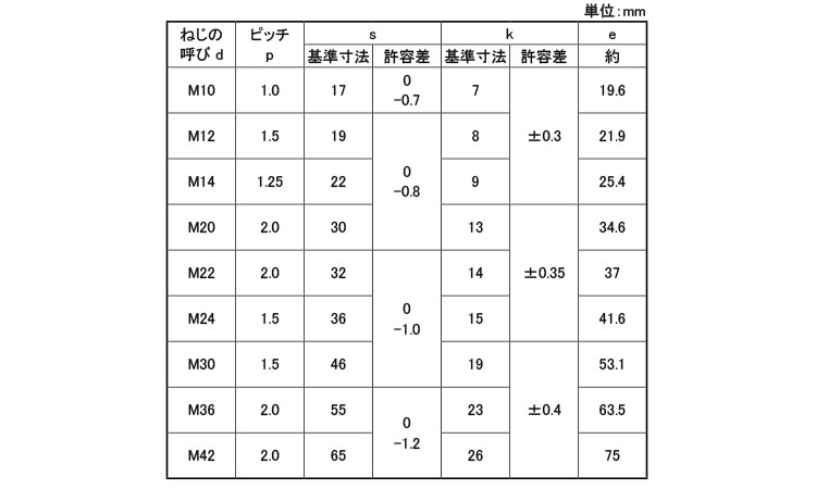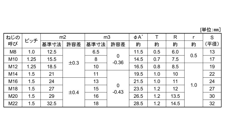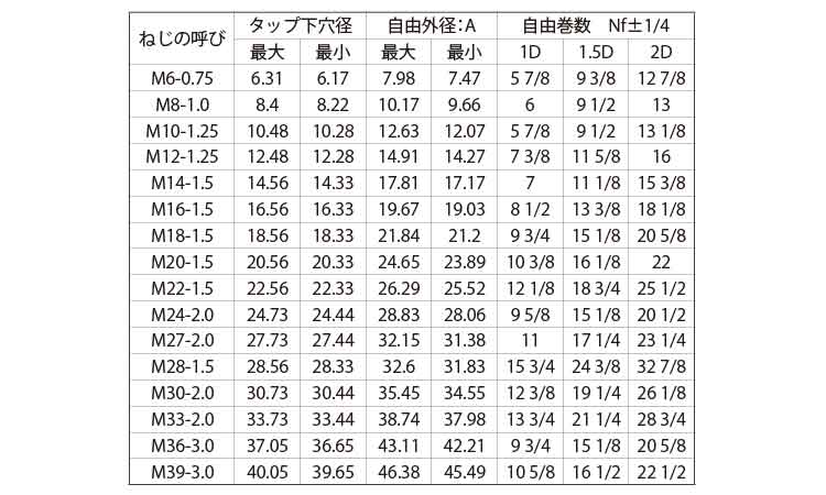 - dia range:M10~M42