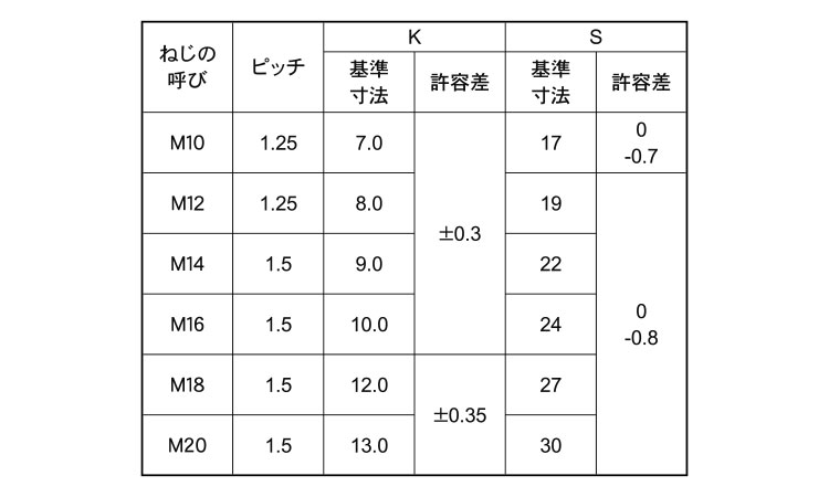 - dia range:M10~M20